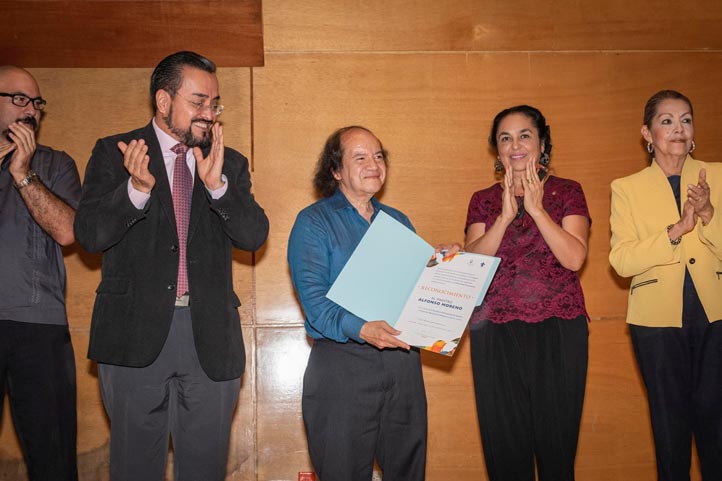 Por su parte, la Rectora entregó un reconocimiento a Alfonso Moreno –también Doctor Honoris Causa por la UV– y se congratuló por la realización de un concurso que lleva el nombre del más significativo maestro guitarrista. “Es un gusto saber que se reproducen los talentos y que ello representa la multiplicación de carreras en nuestra Universidad Veracruzana”, indicó Sara Ladrón de Guevara.