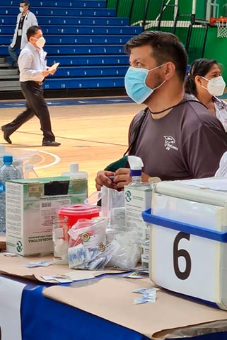 16/05/2021, XalapaVer.- Un total de 29 alumnos de las facultades de Medicina, Odontología y Psicología de la Universidad Veracruzana (UV), así como nueve instructores adscritos a la Dirección de Actividades Deportivas de esta casa de estudios (DADUV), realizaron una importante labor como voluntarios en las jornadas de vacunación contra el Covid-19 para personas de 50 a 59 años.