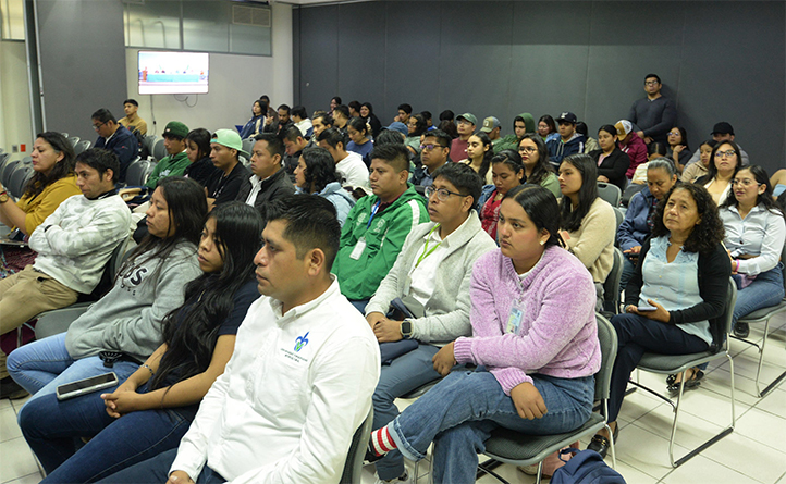Al dirigirse al alumnado presente en la sala de Videoconferencias de la Unidad de Servicios Bibliotecarios y de Información (USBI), comentó: “Algo que me gusta mucho de este programa de la UV-Intercultural y de LASA, es que es una agroecología en acción desde el principio; ustedes están ahí en campo, con las comunidades, aplicando lo que aprenden y que en realidad rinde muchos frutos”.
