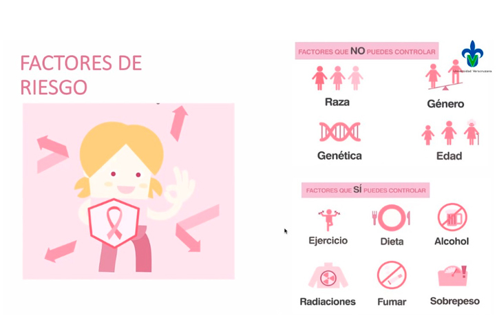 Los síntomas son hoyuelos o pequeñas bolitas en el seno, piel de naranja, enrojecimiento, dolor, pezón invertido, secreciones y erosiones. Como medida de prevención mencionaron la práctica de la autoexploración una vez al mes a partir de los 20 años de edad, preferentemente frente a un espejo o durante el baño.