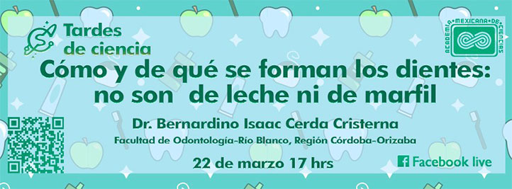 21/03/2022, Xalapa, Ver.- Dentro del programa de divulgación científica “Tardes de Ciencia”, que promueve la Dirección General de Investigaciones (DGI) de la Universidad Veracruzana (UV), Bernardino Isaac Cerda Cristerna, académico de la Facultad de Odontología región Orizaba-Córdoba, dictará la charla virtual “Cómo y de qué se forman los dientes: no son de leche ni de marfil”.