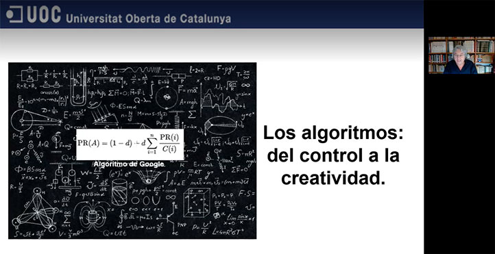 En el evento virtual, al que asistieron estudiantes, académicos y autoridades universitarias, Campás Montaner dio su punto de vista humanístico y subrayó que los algoritmos tienen que ver con todo: economía, política, sistema capitalista, comportamiento humano, género, emociones, creatividad, comunicación y la cultura del ocio.