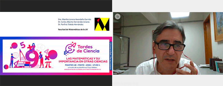 21/05/2021, Xalapa, Ver.- Las matemáticas son un lenguaje único que impacta en la vida de las personas, coincidieron los académicos Martha Lorena Avendaño Garrido, Carlos Alberto Hernández Linares y Porfirio Toledo Hernández, al participar el martes 18 de mayo en el programa “Tardes de Ciencia”, con la charla “Las matemáticas y su importancia en otras ciencias”.