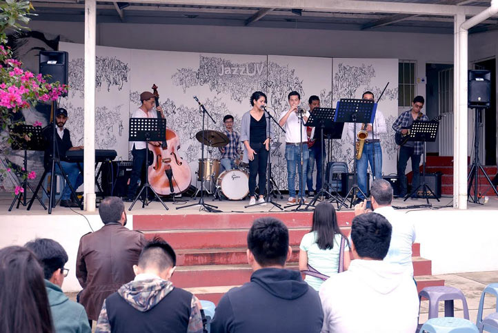 “Tocar en el escenario es lo que conocemos como foguearse e implica hacerlo frente a un público porque esto es muy diferente a estar en ensamble, dentro de un salón de clase donde tocan para ellos y el maestro”, expresó Amir Moreno Vázquez, profesor del Jazzuv, quien dirigió a dos grupos integrados por alumnos de los primeros cursos.