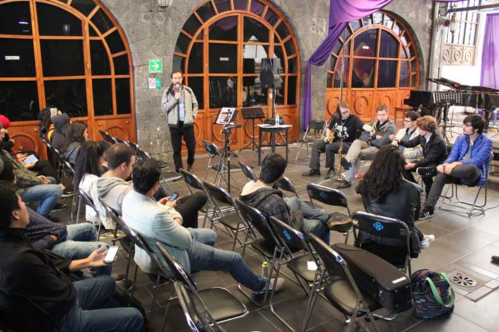Posteriormente, el músico impartió una plática sobre la Maestría en Jazz de la NIU, momento que los jóvenes aprovecharon para despejar dudas acerca de las dificultades que pudieran enfrentar y expresar opiniones al respecto.