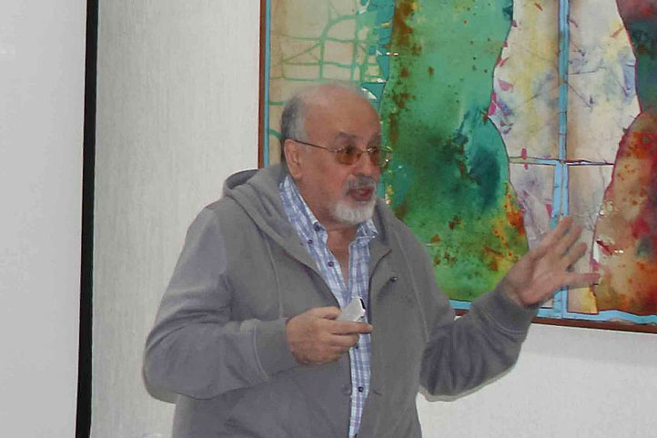 Guillermo Cuevas complementó su exposición con la proyección en video para cada una de las obras mencionadas.