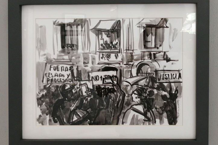 Agregó que él obedece mucho a ese primitivo instinto que es similar a la escritura, porque sin duda dibujar es semejante a escribir, por lo que invitó a los presentes a ver la exposición como si fuera un texto que están leyendo.