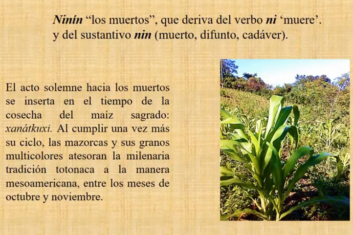 El investigador comentó que los totonacas se dan cuenta del momento en que arriban los muertos por la llegada de los aires frescos del norte, y enfatizó que en esta venida de las almas es fundamental que los caminos, cementerios, casas y milpas estén muy bien cuidados y limpios antes de su llegada.