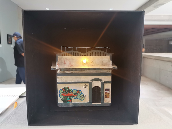 12/07/2022, Xalapa, Ver.- El Museo de Antropología de Xalapa (MAX) de la Universidad Veracruzana (UV) aloja hasta el 10 de agosto la exposición Luz nocturna del artista plástico Keibun Obed Gómez Hernández, integrada por 17 pinturas, cinco fotografías, tres animaciones y un diorama que se exhiben en el Mezzanine de este recinto.