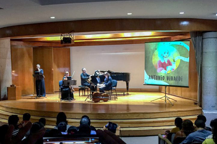 Conocieron también interesantes datos de la vida del compositor italiano, en un formato de cuento narrado por la cantante Sandra Lohr, quien con imágenes e instrumentos involucró a los asistentes en el maravilloso mundo creado por Vivaldi con su música y los versos escritos en las partituras de sus conciertos Primavera, Verano, Otoño e Invierno.