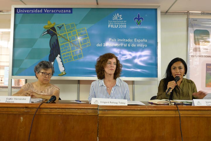 05/05/18, Xalapa, Ver.- Las investigadoras Esther Hernández Palacios e Irmgard Rehaag Tobey calificaron al libro digital Estudios sobre la violencia de género en la universidad como una herramienta de consulta que enfoca cómo se da la violencia de género en distintos ámbitos de la sociedad, pero sobre todo la que se da en las aulas universitarias.