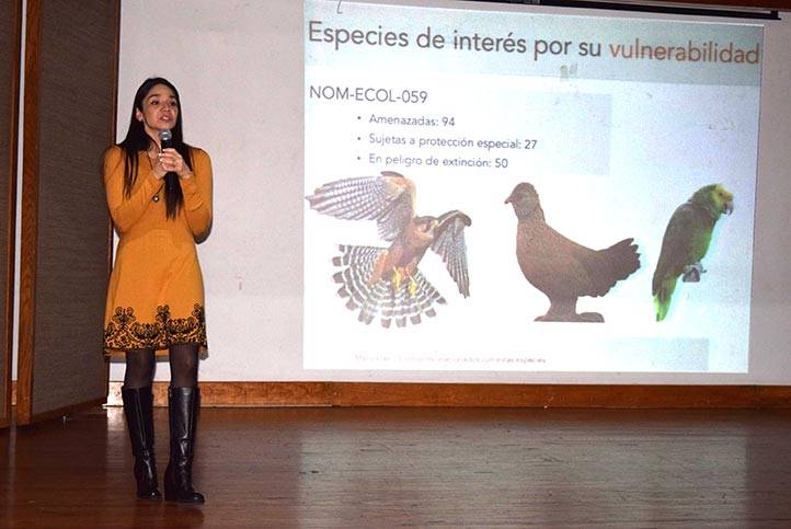 Previo al corte del listón, la bióloga Angelina Ruiz comentó en breve charla que en el mundo hay 10 mil 500 especies de aves; México ocupa el undécimo lugar de acuerdo a su riqueza avifaunística y en Veracruz se tienen registradas 717 especies.