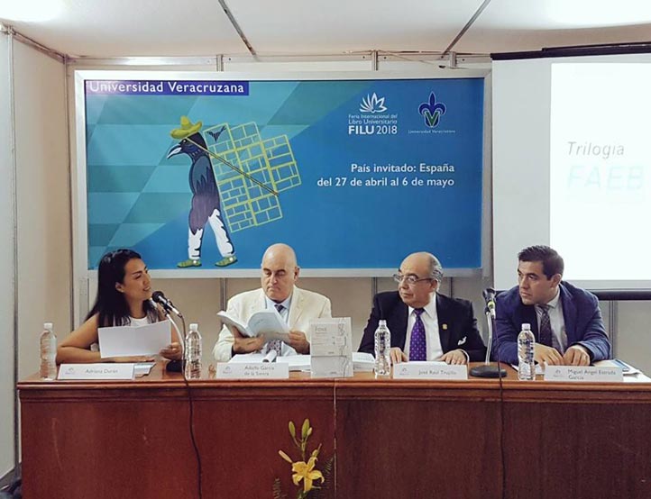 05/05/18, Xalapa, Ver.- José Raúl Trujillo, director general de Recursos Humanos de la Universidad Veracruzana (UV), presentó la Trilogía El FAEB-FONE 2008-2017, en el marco de la XXV Feria Internacional del Libro Universitario (FILU).