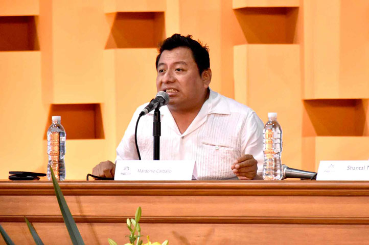 En el Foro “Sergio Galindo” del Complejo Deportivo Omega, el miércoles 2 de mayo, refirió que la historia de Mardonio Carballo es la historia de miles de indígenas de este país, que a pesar de que se les diga que son minoría, “somos una ‘minoría’ de 20 millones de personas que hacen que cada vez sea más difícil de tapar el sol de la diversidad con un dedo, y eso no será posible, menos ahora pues en 1994 un grupo de personas tomó las armas para decir ‘Ya basta’, para decir ‘Nunca más un México sin nosotros’, pero al mismo tiempo para apostar por un mundo en donde quepan muchos mundos”.
