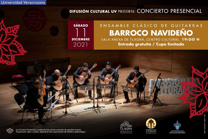 Ese mismo día, pero a las 19:00 horas, en la Sala Anexa de Tlaqná, el Ensamble Clásico de Guitarras deleitará al público con el programa Barroco navideño, que incluye obras de Giuseppe Valentini y Johann Sebastian Bach.