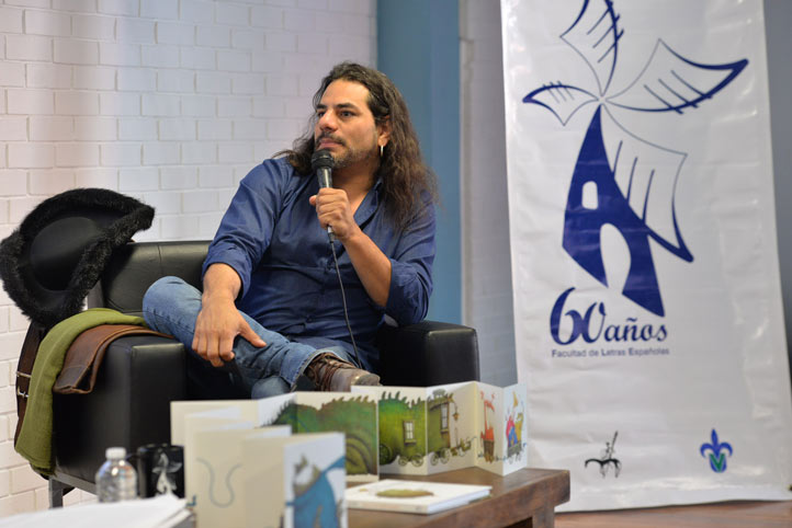 La actividad se desarrolló el jueves 24 de mayo en el Salón Azul de la Unidad de Humanidades y un día después, en el mismo espacio, ofreció una clase maestra de ilustración.