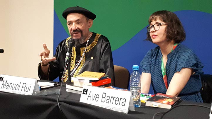 Manuel Rui habló de sus libros que han sido traducidos en diversos idiomas e hizo referencia a la literatura y la escritura como un arte. Realizó un llamado para que haya armonía de saberes y se pueda tender un largo arcoíris de México a Angola para mantener una comunicación directa.