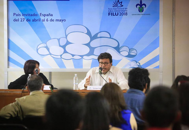 02/05/18, Xalapa, Ver.- El escritor colombiano Santiago Gamboa compartió que los viajes que hizo a lo largo de su vida han sido fundamentales en su desarrollo como escritor, al conversar con su colega Raquel Velasco, académica de la Universidad Veracruzana (UV), en el marco de la XXV Feria Internacional del Libro Universitario (FILU).