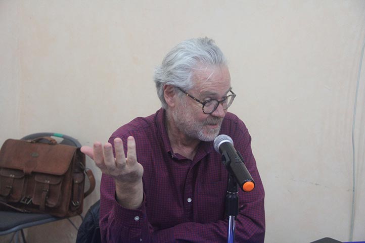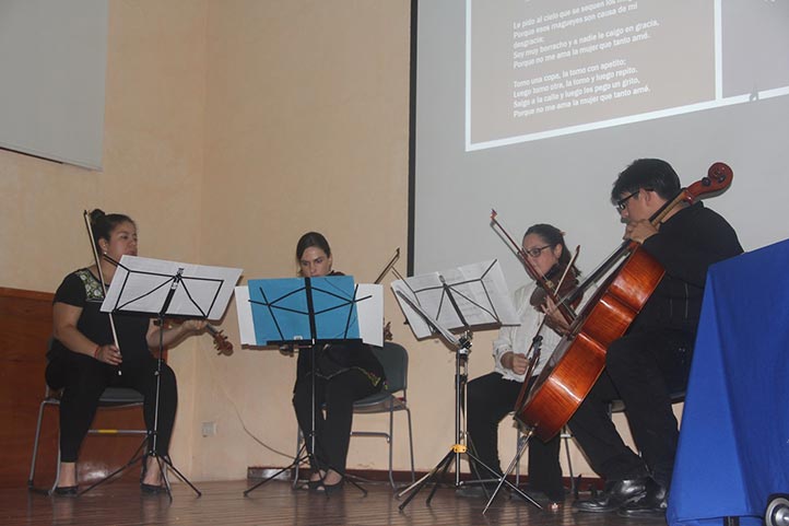 El académico estuvo acompañado por un cuarteto de cuerdas de la Orquesta Sinfónica de Xalapa (OSX), para ejemplificar los comentarios.