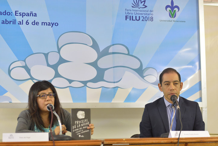 28/04/18, Xalapa, Ver.- Diana del Ángel, poeta, ensayista y defensora de derechos humanos, presentó en la Feria Internacional del Libro Universitario (FILU) 2018 de la Universidad Veracruzana (UV), su libro Procesos de la noche, en el cual relata la travesía enfrentada por familiares de Julio César Mondragón Fontes, uno de los normalistas de Ayotzinapa ejecutado el 26 de septiembre del 2014 en el municipio de Iguala, hallado con el rostro desprendido.