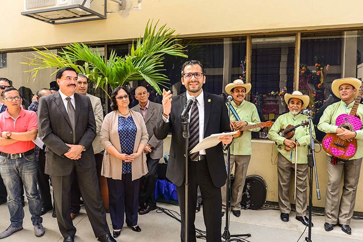 Las palabras de bienvenida estuvieron a cargo del titular de la SAF, Salvador Tapia Spinoso, quien subrayó que el altar muestra los elementos tradicionales, así como las fotografías de quienes, como se dice comúnmente, “se nos adelantaron” y en vida contribuyeron de manera sustantiva en esta institución, tal es el caso de exrectores, a quienes nombró uno a uno.