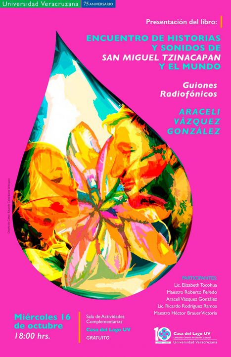 12/10/2019, Xalapa, Ver.- El miércoles 16 de octubre a las 18:00 horas, en la Casa del Lago de la Universidad Veracruzana (UV), se presenta el libro Encuentro de historias y sonidos de San Miguel Tzinacapan y el mundo (Taltikpak sanilmej mo sen ajsij iuan in xolal San Miguel Tzinacapan), de la escritora y actriz radial Araceli Vázquez González.