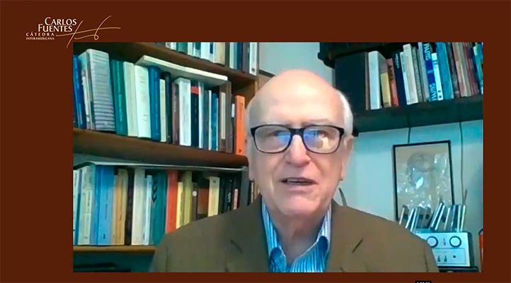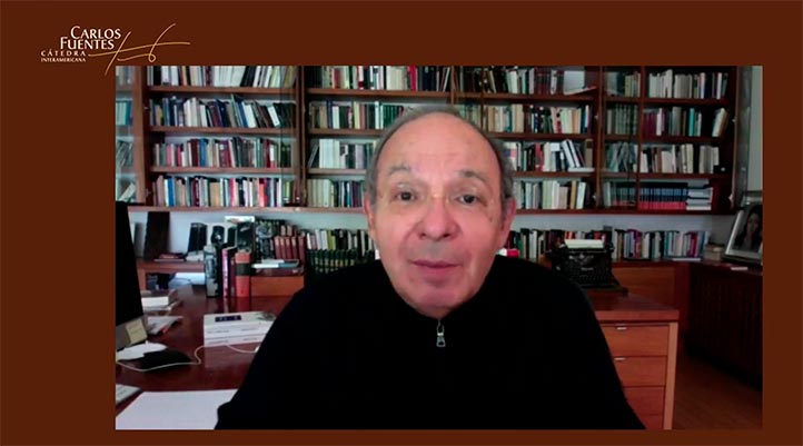 Este encuentro virtual tuvo lugar el martes 18 de mayo, en el marco de la octava edición de la Cátedra Interamericana “Carlos Fuentes” (CICF) “Tiempo mexicano: 50 años después”, realizada por la Universidad Veracruzana (UV).