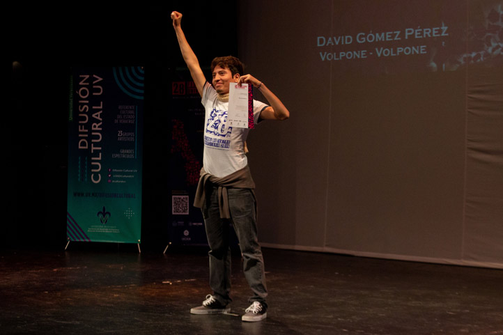 La ceremonia de premiación tuvo lugar en la Sala “Dagoberto Guillaumin” del Teatro del Estado, presidida por Miguel Flores Covarrubias, director general del Área Académica de Artes, así como por el director general de Difusión Cultural, Rafael Alcalá Hinojosa.