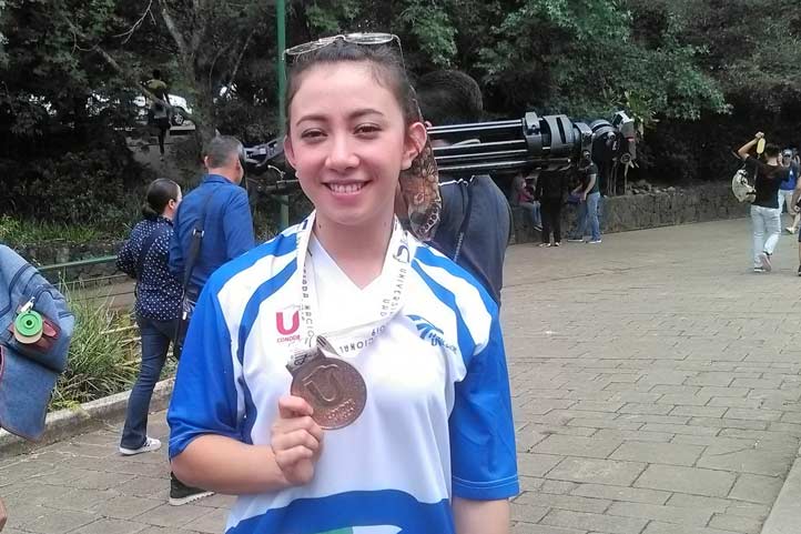 Por su parte Alejandra González, de la Facultad de Ciencias Administrativas y Sociales, es ganadora de medalla de bronce en la disciplina de halterofilia.