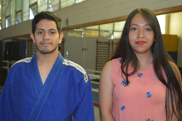 - Adrián Torices y Jaquelin Aburto, alumnos que participan en el curso de Judo