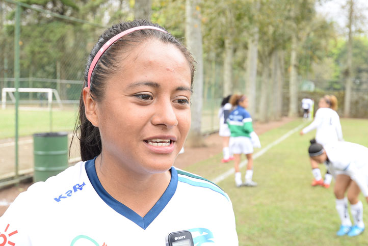 Xalapa, Ver., 10/02/2017.- Magaly Cortés Hernández, capitana de la Selección Femenil de Futbol de la Universidad Veracruzana (UV), destacó que el buen desempeño en el Torneo Telmex es el resultado de los entrenamientos, por lo que el equipo avanza en el reto de ser protagonista.