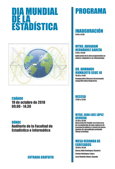 - El 19 de octubre se celebrará el Día Mundial de la Estadística, en el auditorio de la Facultad