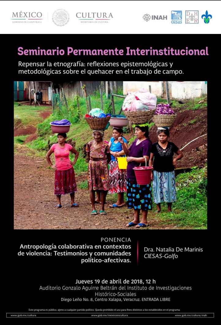 07/04/2018, Xalapa, Ver.- El Instituto de Investigaciones Histórico-Sociales (IIH-S), a través del Doctorado en Historia y Estudios Regionales (DHER), invita a la comunidad universitaria a la apertura del Seminario Interinstitucional Permanente “Repensar la etnografía: reflexiones epistemológicas y metodológicas sobre el quehacer en el trabajo de campo”, a realizarse el jueves 19 de abril.