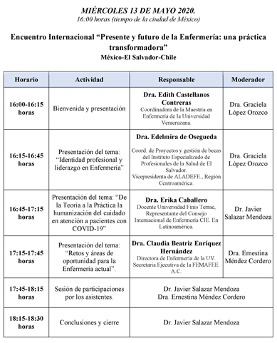 11/05/2020, Boca del Río, Ver.- La Facultad de Enfermería de la Universidad Veracruzana (UV), región Veracruz, conmemorará el Día Internacional de la Enfermera con un programa académico que incluirá videoconferencias, que serán impartidas por docentes invitados de El Salvador y Chile así como profesionales enfermeros mexicanos radicados en Estados Unidos y Alemania.
