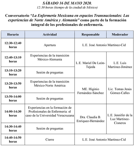 El sábado 16 será el Conversatorio “La enfermería mexicana en espacios transnacionales: las experiencias de Norteamérica y Alemania”, como parte de la formación integral de los profesionales de enfermería.