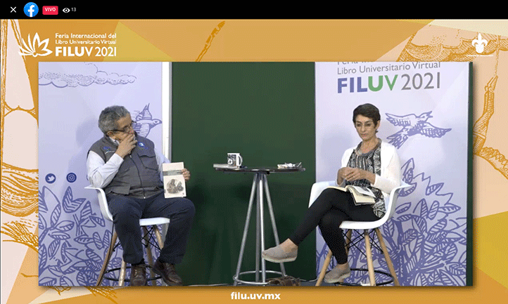 Germán Martínez Aceves y Yamile de la Cruz Lira López, durante la presentación de la obra en la FILU Virtual 2021