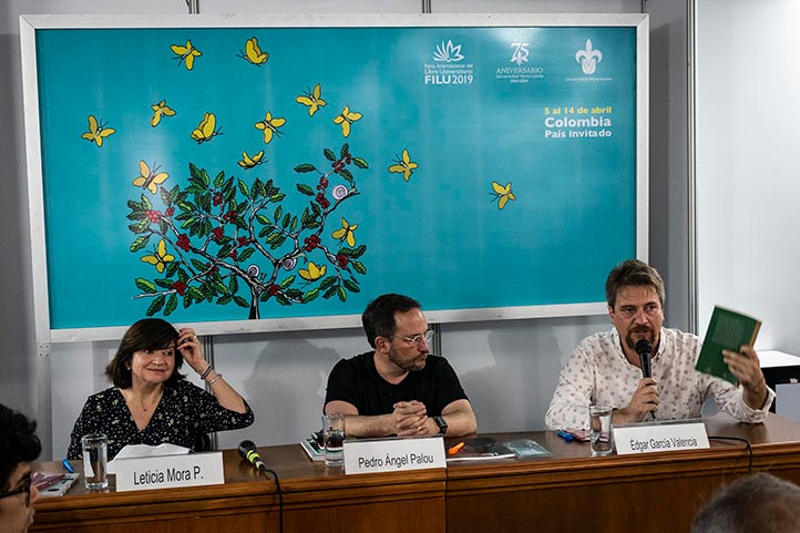 El Salón “Juan Vicente Melo” fue sede de este acto en el que participaron Leticia Mora Perdomo, escritora y doctora en Filosofía por la Universidad de Texas, y Edgar García Valencia, director de la Editorial UV, como moderador.