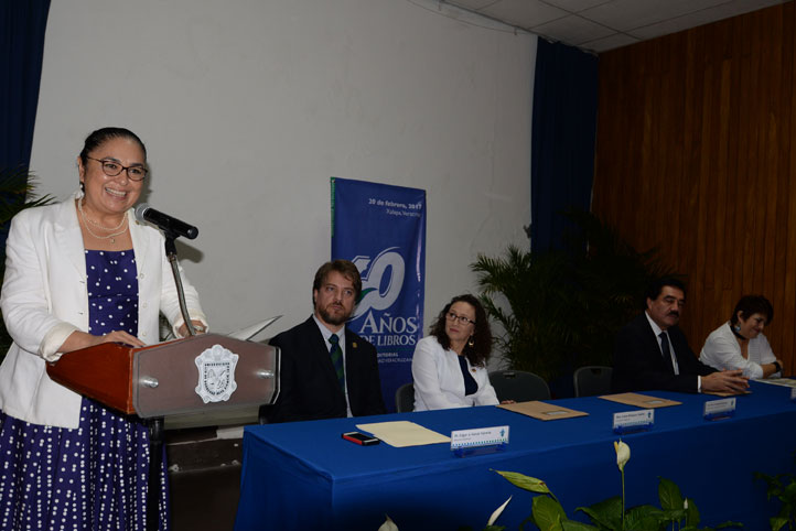 La ceremonia, que se realizó precisamente este lunes 20 de febrero, fue presidida por la Rectora; la secretaria académica, Leticia Rodríguez Audirac; el secretario de la Rectoría, Octavio Ochoa Contreras; el director de la Editorial, Edgar García Valencia, y la presidenta del Consejo Editorial, Celia del Palacio Montiel.
