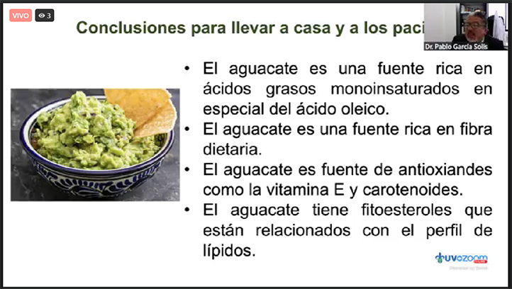 El ponente señaló que el consumo de aguacate tiene varios beneficios y un gran potencial de investigación