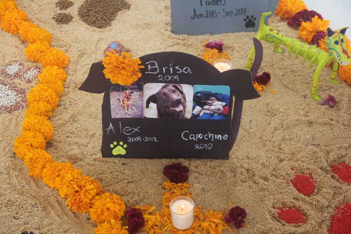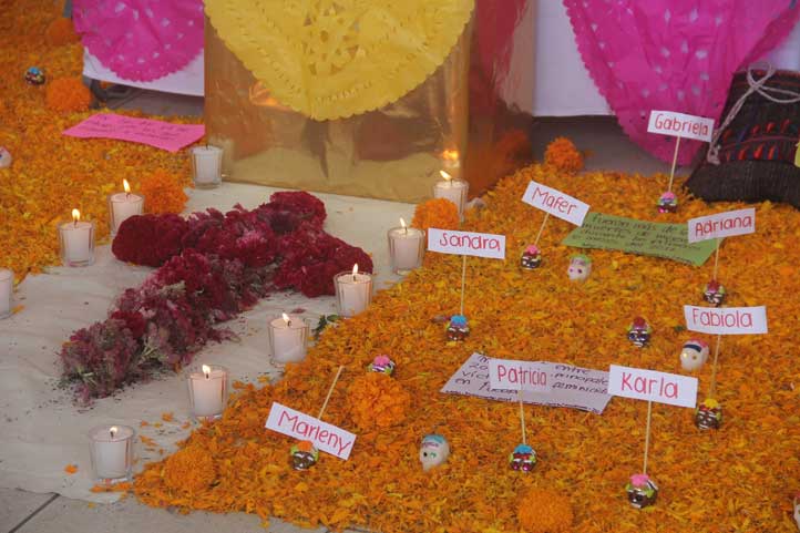 Destacaron dos altares por su mensaje social: uno dedicado a las mujeres asesinadas y desaparecidas en territorio nacional, y otro destinado a la memoria de mascotas fallecidas, cuyo mensaje era detener el maltrato animal.
