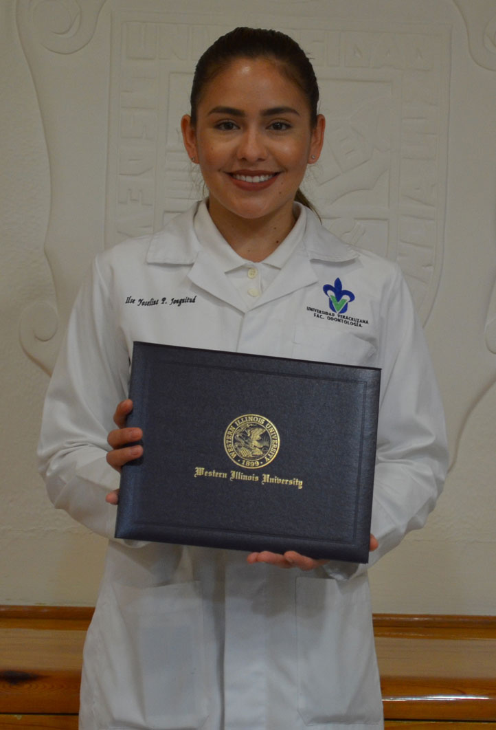 Poza Rica, Ver., 03/12/2016.- Ilse Yoselin Pérez Jonguitud, estudiante de séptimo semestre de la carrera de Odontología de la Universidad Veracruzana (UV), concluyó recientemente una estancia en la Western Illinois University, donde cursó estudios de inglés intensivo gracias a una beca otorgada por el programa Proyecta 100 000, impulsado por las secretarías de Educación Pública (SEP) y de Relaciones Exteriores (SRE).