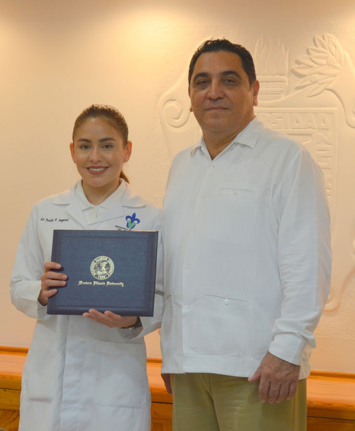 La estudiante visitó al vicerrector José Luis Alanís Méndez para mostrar el reconocimiento que le fue entregado en la Western Illinois University, quien a su vez la felicitó por sus importantes logros académicos.
