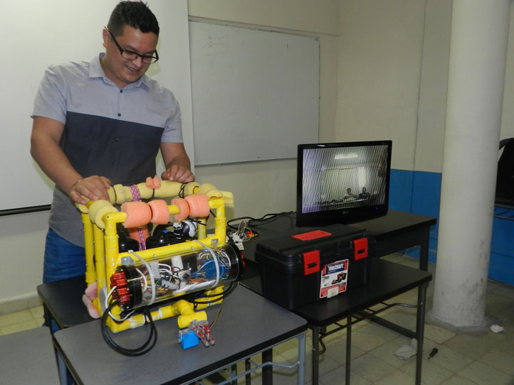 Adán Manolo, quien inició con la idea, explicó: “Nuestro proyecto consiste en la construcción de un vehículo operado a control remoto (ROV, por sus siglas en inglés), podría decirse que es un dron sumergible”. Entre sus características destaca que puede alcanzar profundidades de hasta 100 metros.