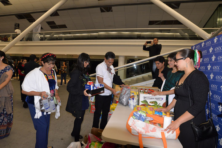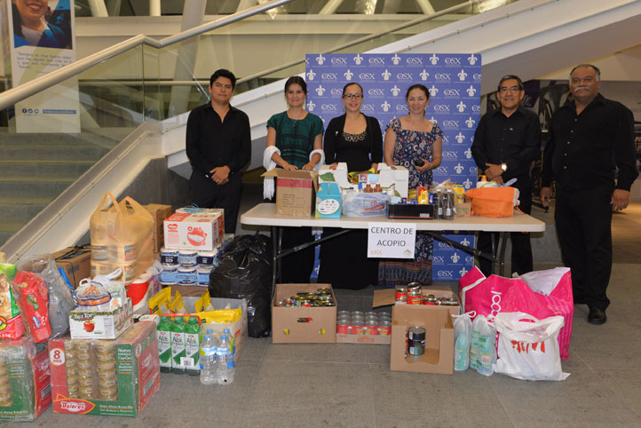 El centro de acopio fue instalado en el lobby de la sala y poco a poco el apoyo de la comunidad universitaria y del público en general fue llenando la mesa instalada para tal fin. Los asistentes apoyaron con comida enlatada, sopas, jabón, medicamentos, material de curación, comida para mascota, entre otros productos.