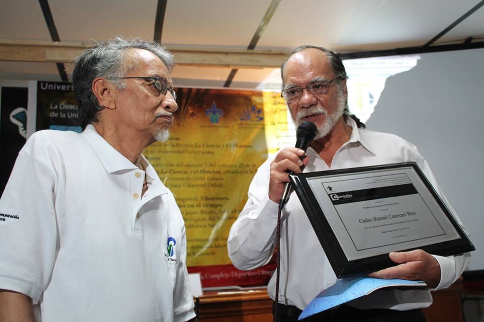 Xalapa, Ver. 30/04/2016.- Por su destacada labor en el campo de la divulgación científica, Carlos Manuel Contreras Pérez, investigador de la Universidad Nacional Autónoma de México (UNAM) asignado al Instituto de Neuroetología de la Universidad Veracruzana (UV), recibió el premio “La Ciencia y El Hombre” 2016.