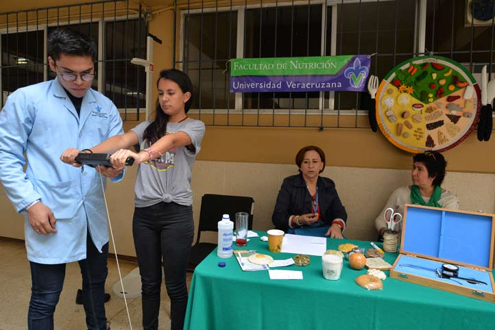 Saraí Román, estudiante en servicio social de la Facultad de Nutrición, destacó la importancia de la evaluación nutricional de las personas. Por ello, en este evento tomaban datos antropométricos (peso, talla y masa muscular) para posteriormente realizar un plan de alimentación personalizado. “A mí me parece que es muy buena esta fiesta pues generalmente no tenemos la cultura de la prevención, y a los estudiantes y otros universitarios tenemos que decirles que la salud permite un mejor rendimiento”.