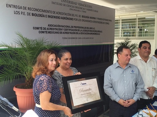 En Tuxpan, estuvo presente María Teresa Mondaca Cota, presidenta del Comité Mexicano de Acreditación de la Educación Agronómica, y Eduardo Zarza Meza, presidente de la Asociación Nacional de Profesiones del Mar y coordinador del Comité para la Acreditación de la Licenciatura en Biología, quienes entregaron la reacreditación de Ingeniero Agrónomo, la acreditación del PE de Biología Marina y la reacreditación de Biología, respectivamente.