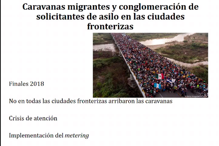 Destacó que la migración es compleja, multicausal y multifacética dado que la frontera puede ser el lugar de origen de los migrantes, el lugar de destino, de tránsito o de retorno, y en años recientes se ha incrementado su importancia como lugar de espera para quienes buscan solicitar el asilo político en Estados Unidos.
