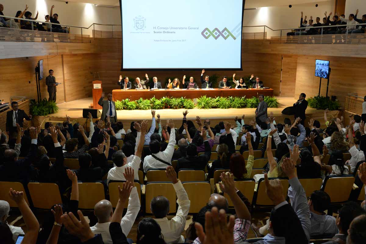 Xalapa, Ver., 09/06/2017.- El Consejo Universitario General (CUG) de la Universidad Veracruzana (UV) celebró la última sesión ordinaria del periodo 2013-2017 de la administración que encabeza la rectora Sara Ladrón de Guevara, y en ésta se aprobaron 12 nuevos programas educativos (PE), modificaciones curriculares a nueve de los ya existentes y se demandó respeto a la Junta de Gobierno y a los procesos relacionados con la próxima designación del titular de la Rectoría.