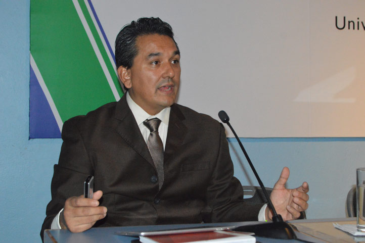 Ante los integrantes de las unidades internas del Sistema Universitario de Gestión Integral del Riesgo (SUGIR) de la Universidad Veracruzana (UV), Franco Vargas habló de diversos aspectos contenidos en esquemas de gestión integral del riesgo, “pero muchas veces no están del todo claros”, por lo que buscó describirlos tanto en el marco de la Ley General de Protección Civil, como en el marco de la lógica y del sentido común “para que la gente conozca qué es, cómo se identifica, de qué se trata y cómo se prevé un riesgo”.